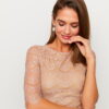 Платье из нетянущегося гипюра приталенного кроя мини длины с рукавом 3/4, в боковом шве потайная молния
