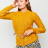 Свитер из теплого вязанного трикотажа с добавлением шерсти, по груди и рукавам изделие декорировано узором вязаным узором, рукава длинные; горловина, низ свитера и манжеты рукава – резинка