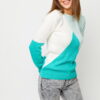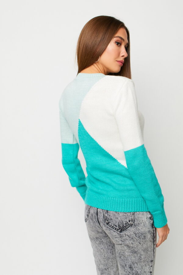 Трехцветный свитер в универсальном размере из теплого вязанного трикотажа с добавлением шерсти, рукава длинные; круглая горловина, низ свитера и манжеты – резинка